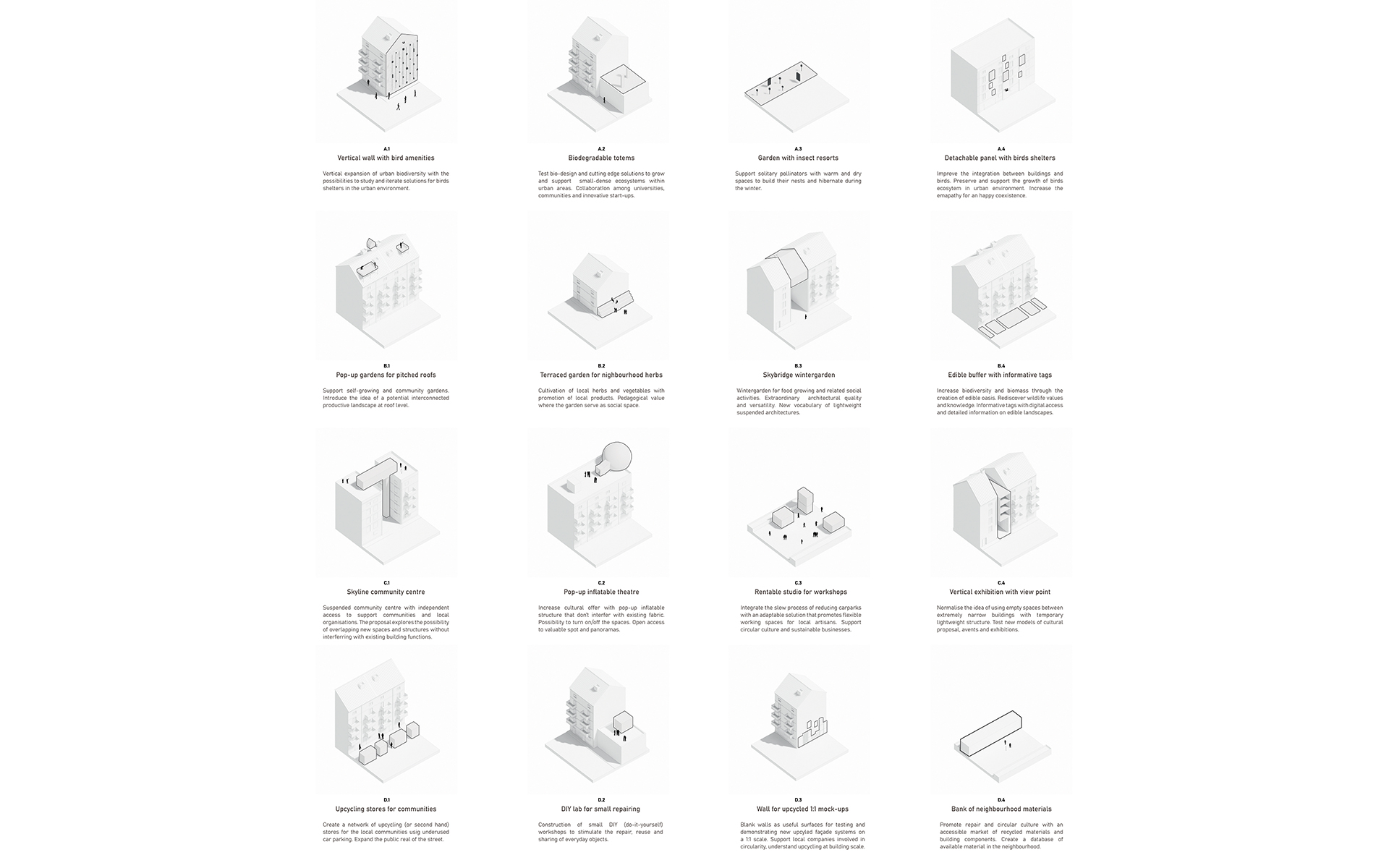 in many European cities, the area spanning between the old city centre and the suburban outskirts has experienced significant development over the past 50 years, resulting in a diverse array of urban typologies. This transformation has spontaneously produced a considerable number of neglected and underutilized spaces, here defined as “leftovers”. The Grafted City emerges from the recovery of these spaces and the creation of a network of lightweight architectural experiments as a means of triggering, testing and iterating new models of densification, space reclamation and sustainability.