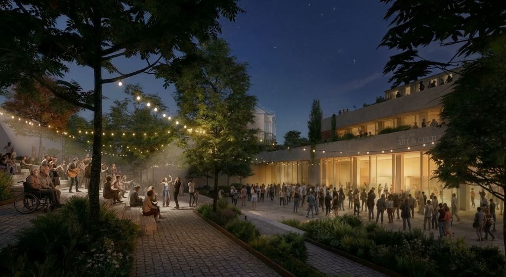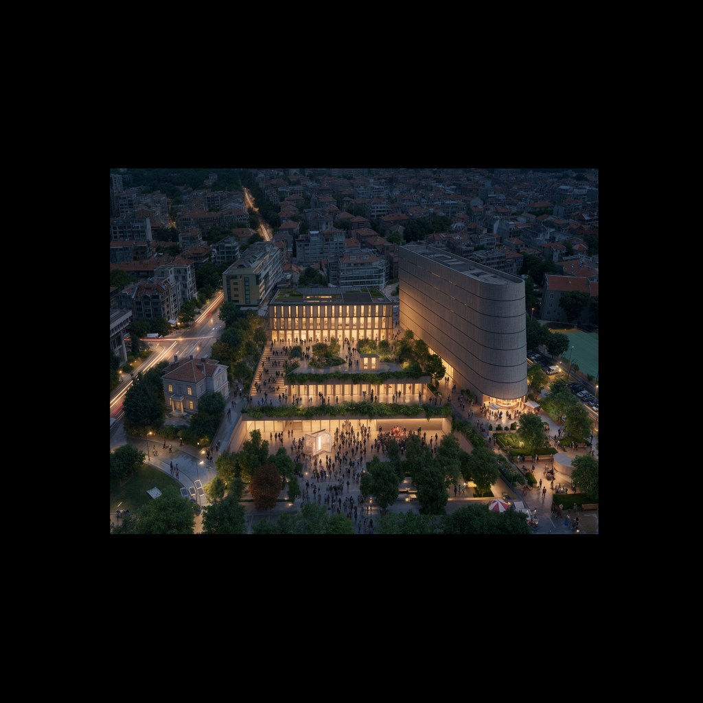 By reinterpreting the existing abandoned “hole” as a sheltered, multi-seasonal stage park, the design establishes an original and contextually appropriate dialogue between the historic Troykata Square and the contemporary cultural life of Burgas. This strategy focuses on reconnecting the fragmented fabric with the public ground, creating a project that serves as both a multi-use cultural hub, a vibrant public destination and a climate resilience pocket. The resulting vision creates a unique destination where heritage, ecology, and contemporary art converge to define the new civic identity of Burgas.