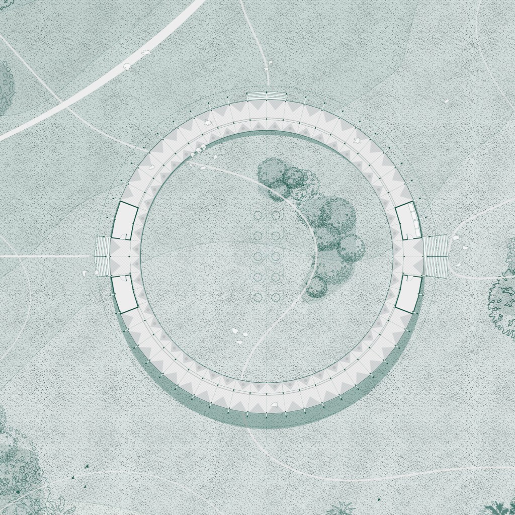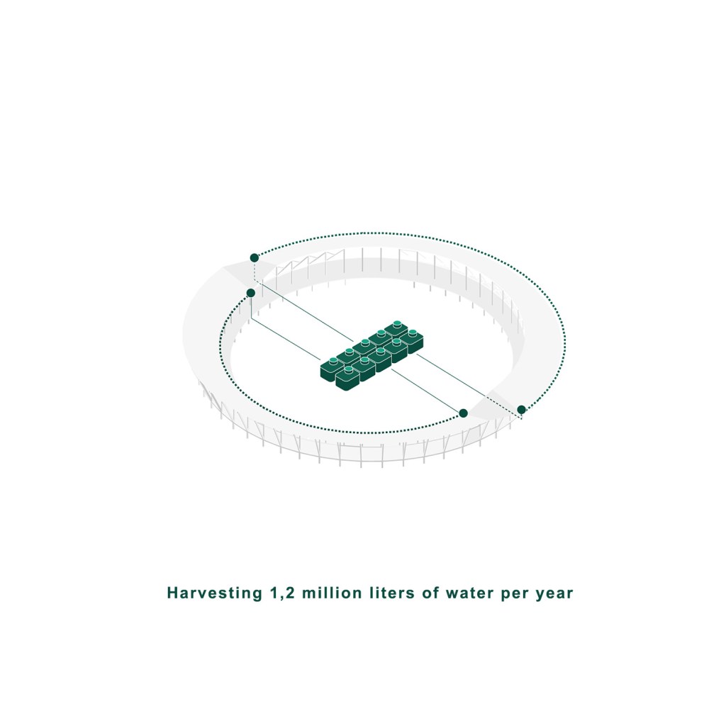 The “O” is a multifunctional structure that unites energy generation, water harvesting, and social spaces into a single, poetic gesture – supporting the Marou community in their transition toward a sustainable future.